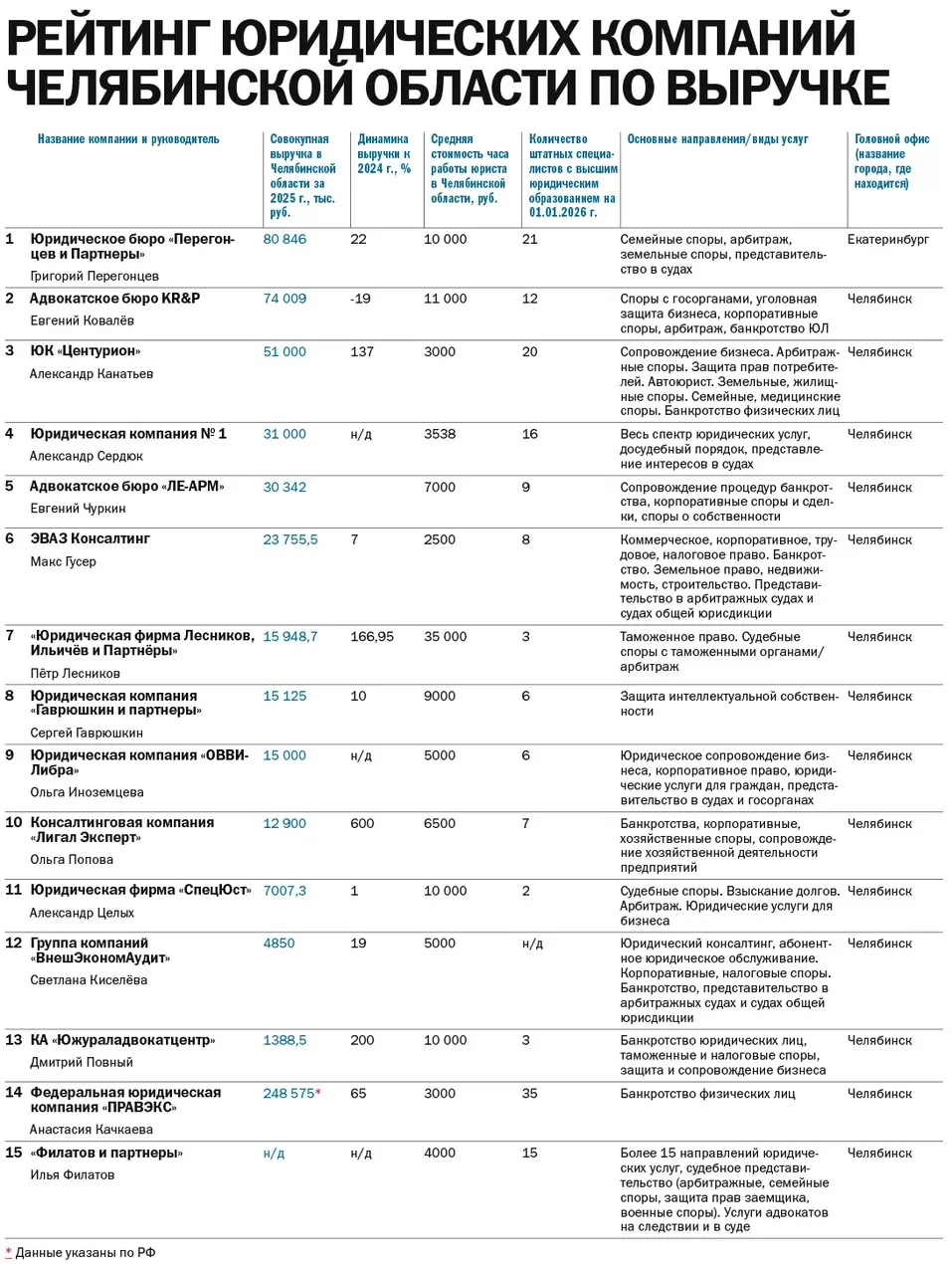 Рейтинг юридических компаний Челябинской области по итогам 2025 г.